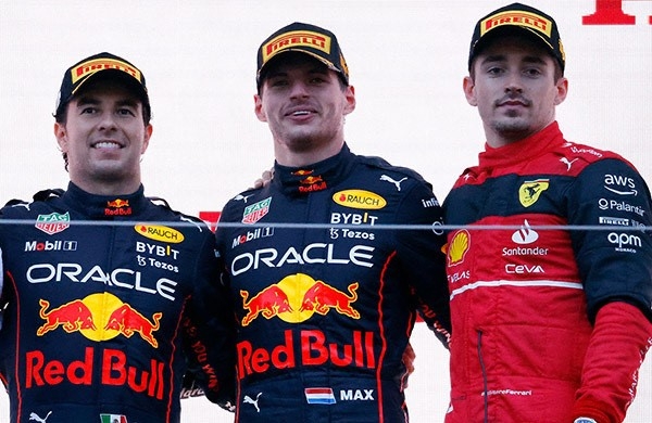 Luego de esto, Max seguía poniendo distancia a Charles Leclerc, que paulatinamente perdía ritmo, lo que también aprovechaba Checo con un buen ritmo para empezar a atacar al monegasco por la P2 cuando quedaban unos siete minutos de carrera, era el giro 23 entonces. Lucha que continuaría hasta el final en un emocionante final de fotografía, con Max como triunfador, Charles Leclerc en segundo y Checo en tercero, pero con investigación a Charles por haber cortado pista, tras 29 vueltas totales que finiquitaron esta muy mojada carrera.