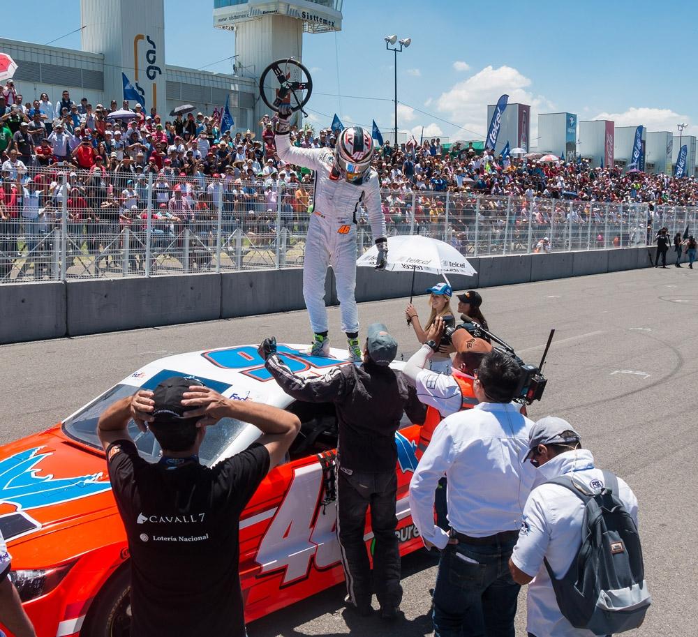 Irwin Vences, del auto #46 Vences JV Motorsport, se llevó la victoria este domingo en la Chedraui 120, octava fecha de Telcel Presenta NASCAR PEAK México Series, realizada en el Autódromo EcoCentro de Querétaro.
