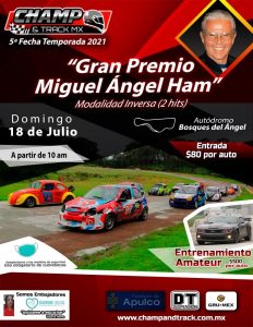 Este próximo domingo 18 de julio se llevará a cabo la fecha cinco de la temporada 2021, denominada “Gran Premio Miguel Angel Ham” en el autódromo Bosques del Ángel, Singuilucan.