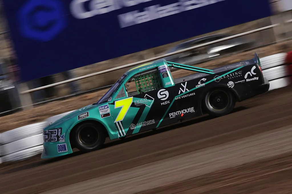 Aquiles Serdán, Chihuahua, a 5 de marzo de 2024.- El circuito de terracería del Aquiles Speedway Park, fue un duro sinodal de la camioneta #7 del piloto Alonso Salinas, que tras tener un fin de semana prometedor, en esta ocasión, la fortuna no jugó a su favor.