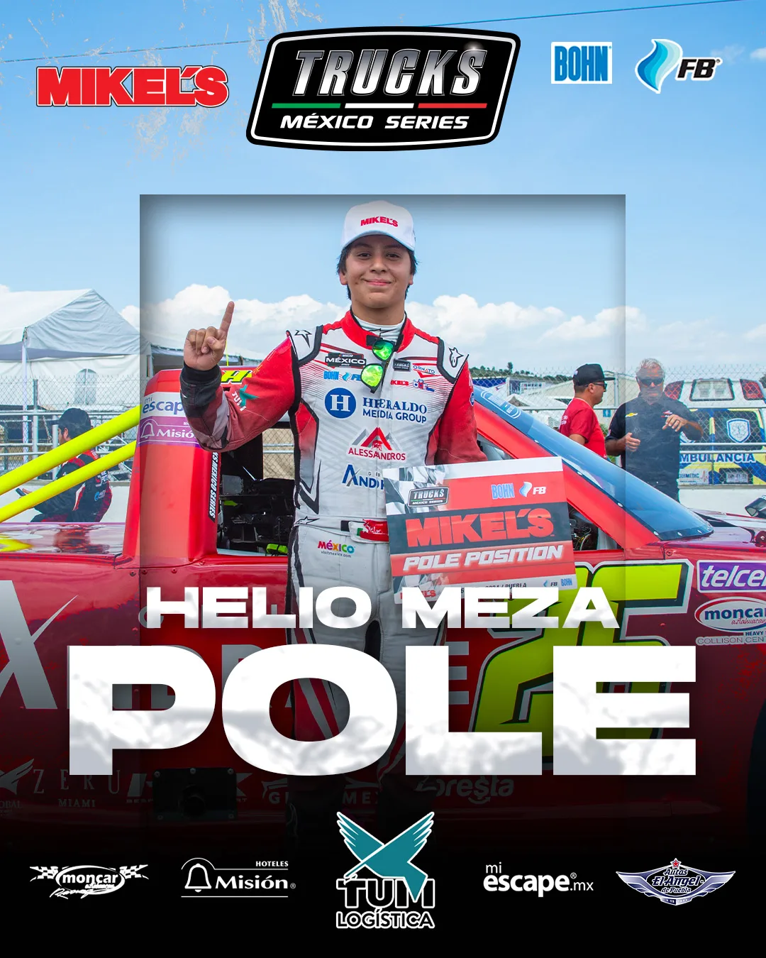 Llegó la primera sorpresa del fin de semana en la séptima fecha de Trucks México Series presentado por BOHN– Mikel’s– Moncar– TUM Logística- Hoteles Misión- Miescape.mx- Autos El Ángel, con el debutante Helio Meza tomando la “Pole Position” en el Autódromo Miguel E. Abed.