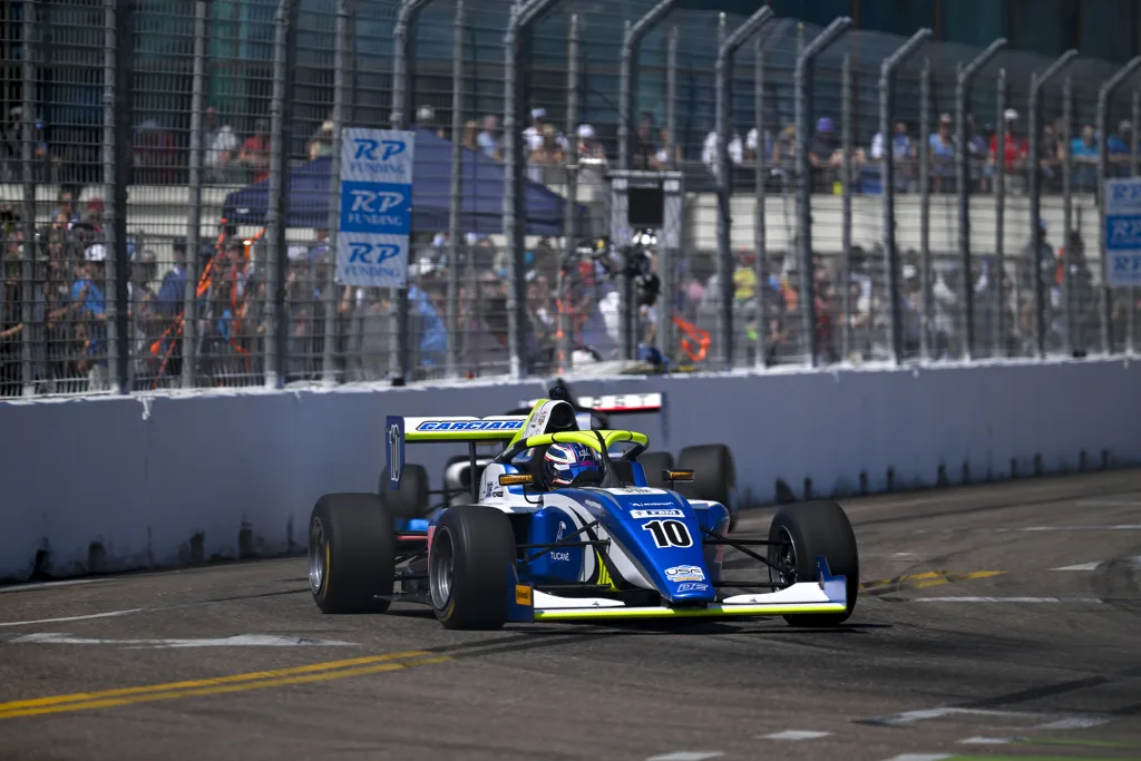 St. Petersburg, Florida, a 9 de marzo de 2024.- Inicio positivo para el tapatio Jorge Garciarce en la USF Pro 2000, debutando a un paso del Top-10 en las calles de St. Petersburg, junto al DEForce Racing.